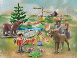• Umfangreiche Ausstattung: 2 menschliche Figuren (Mann ca. 7,5 cm, Mädchen ca. 5,25 cm), Grizzly, Weißkopfseeadler, Elch, Fuchs, 2 Murmeltiere, 3 Lachse, Vogel, Basis mit Fluss, Nadelbaum, Wegweiser, Kamera, Fernglas.