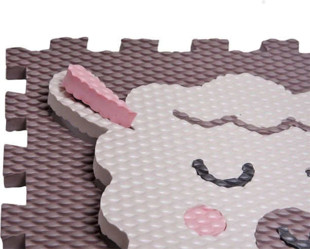 Das Schaumstoff-Puzzle mit Lämmchen-Motiv in dunkelbrauner Ausführung ist ideal für Spielzimmer, Kinderzimmer und Wohnzimmer. Die strukturierte Oberfläche sorgt für sicheren Stand, dämpft Stöße und schützt vor Kälte vom Boden. Die Teile mit durchbrochenen Verbindungszähnen greifen genau ineinander und ermöglichen ein schnelles Zusammensetzen zu einer größeren Spielfläche.