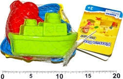 Entdecken Sie endlosen Spaß im Sand mit einem Set von Sandförmchen, das ein Boot, Auto, Zug und eine Rakete enthält. Ideal für kleine Baumeister und kreative Spieler.