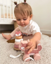 Eine Packung, doppelter Spaß. Kinder können ruhiges Stapeln der Ringe mit dem aktiven Hinterherziehen des Füchsleins abwechseln – das fördert Lernen und Bewegung.