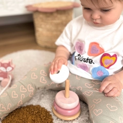Naturbelassenes Holz mit glatten Kanten und beruhigenden Rosatönen liegt gut in der Hand und lädt zum täglichen Spielen ein.