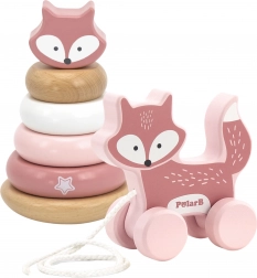 • 2 in 1: Stapelpyramide mit Ringen + Nachziehfuchs auf Rädern