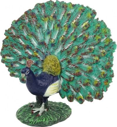 Realistische Verarbeitung: Die Figur wird gegossen und bemalt, um die natürliche Schönheit des Pfaus getreu wiederzugeben.