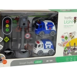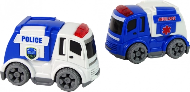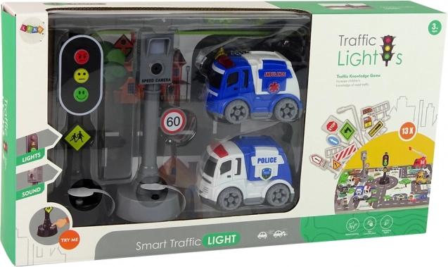 Spielzeugset mit Verkehrsmotiven ideal für Kinder, die die grundlegenden Straßenverkehrsregeln lernen. Es enthält Polizei- und Krankenwagen, die leicht von kleinen Kinderhänden zu greifen sind.