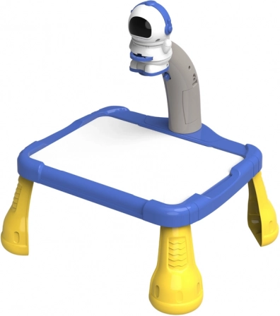 Der Projektor in Astronautenform dient der Projektion von Bildern auf Papier, wodurch Kinder einfach kosmische Motive wie Planeten, Sterne, Raketen und Astronauten verfolgen und zeichnen können. Der Tisch ist mit stabilen gelben Beinen und einer blauen geräumigen Zeichenfläche ausgestattet.
