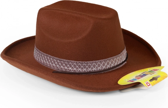 Verwandeln Sie den kleinen Cowboy im Handumdrehen in einen Sheriff. Der braune Hut mit stilvollem Band und glänzendem Sheriffstern sitzt dank des Gummibands sicher und passt auch bei actionreichem Spiel hervorragend.