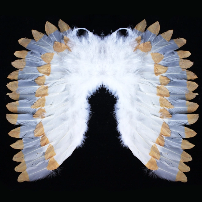 Verleihen Sie Ihrem Outfit himmlischen Charme. Diese weiß‑goldenen Engelsflügel mit zarten Federn und funkelnder Verzierung sorgen für einen eindrucksvollen Look, der bei jeder Gelegenheit heraussticht – von Schulaufführungen bis zu Weihnachtsfeiern.