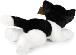Diese weiß‑schwarze liegende Katze aus der exklusiven RAPPA‑Kollektion begeistert durch präzise Handarbeit und einen kuschelweichen Stoff, der zum Schmusen einlädt. Dank durchdachter Details und markanter grüner Augen wirkt sie wie lebendig.