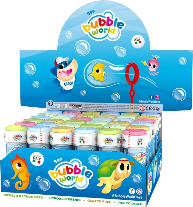 Der SeifenblasenWasserwelt bietet stundenlangen Spaß für Kinder und Erwachsene. Mit einem Volumen von 60 ml ist er ideal zum Spielen im Freien und Innenbereich. Dank des bunten Deckels mit integriertem Spiel wird es nie langweilig. Das Blasen von Seifenblasen ist einfach und macht Spaß dank des praktischen Blaswerkzeugs im Deckel.