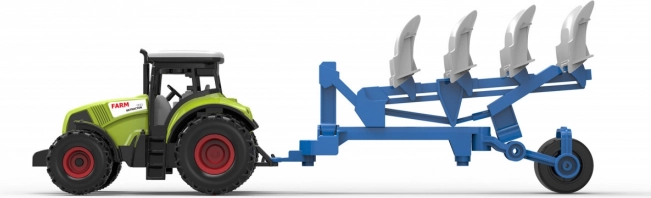 Für die Fahrt sorgt ein Freilaufantrieb, sodass der Traktor sich mit einem leichten Schubs leicht in Bewegung setzt. Die Gesamtlänge des Sets beträgt 37 cm, was Stabilität und eine bequeme Handhabung für kleine Kinderhände gewährleistet. Batterien sind im Lieferumfang enthalten, sodass Kinder direkt nach dem Auspacken losspielen können.