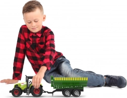 Dieser realistische Traktor mit Anhänger ist ideal für Kinderspiele auf dem Bauernhof. Dank des Schwungrads fährt er leicht an, Tasten aktivieren realistische Geräusche und Lichteffekte, die für zusätzliche Authentizität sorgen. Der Anhänger lässt sich einfach abkoppeln, sodass der Traktor auch allein verwendet werden kann.