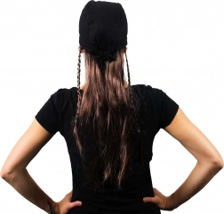 Die Perücke mit Tuch lässt sich leicht aufsetzen und sitzt sicher am Kopf – so können Sie den Spaß unbeschwert genießen.