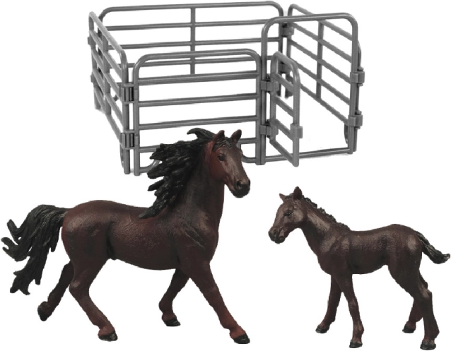 Bereichern Sie Ihre Spielzeugsammlung mit diesem schönen Pferdeset mit Gehege. Die Pferd- und Fohlenfiguren wirken realistisch und erfreuen alle Altersgruppen durch ihre Verarbeitung. Das Set beinhaltet: