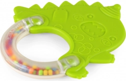 Niedliche Rassel und Beißring in Dinosaurierform – ideal für die Kleinsten. Vereint Spaß mit praktischer Funktion: beruhigt das Zahnfleisch beim Zahnen und fördert zugleich dank kontrastreicher Farben und angenehmem Klang die Feinmotorik und das visuelle Wahrnehmungsvermögen.