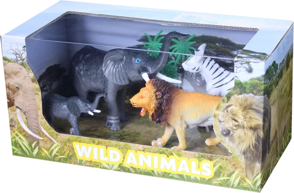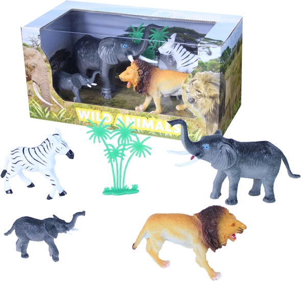 Erweitern Sie Ihren heimischen Zoo mit diesem sensationellen Set wilder Tiere in einer Box. Das Set enthält einen Elefanten, ein Elefantenbaby, ein Zebra, einen Löwen und eine Palme – ideal für kreatives Spielen und das Lernen über die Natur.