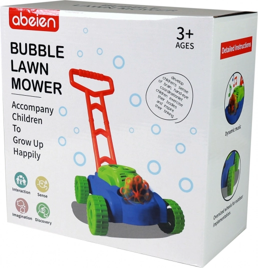 Leichte Bauweise und langer Griff ermöglichen es Kindern, den Rasenmäher leicht zu manövrieren und in Bewegung zu halten, während die Blasen fliegen.