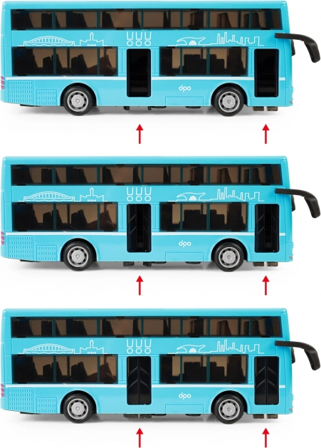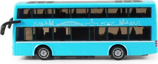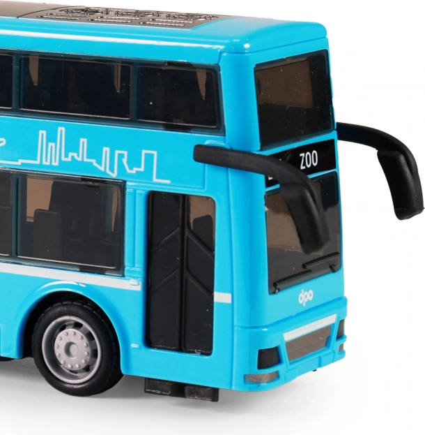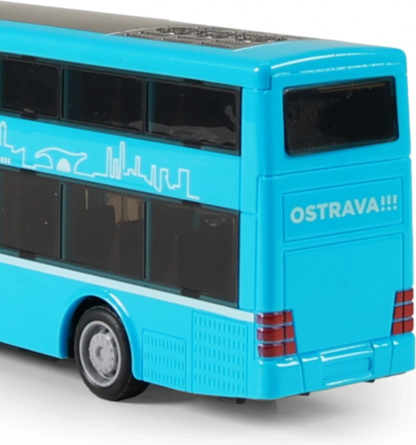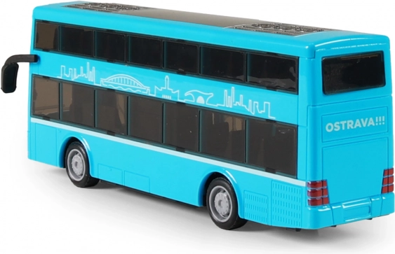 Moderner zweistöckiger Bus mit einer Länge von 20 cm in blauer Farbe ist ein tolles Geschenk für kleine Enthusiasten. Dieser türkisfarbene Schwungrad-Bus bietet öffnende Türen und ein realistisches Design, inspiriert vom Verkehr in Ostrava.