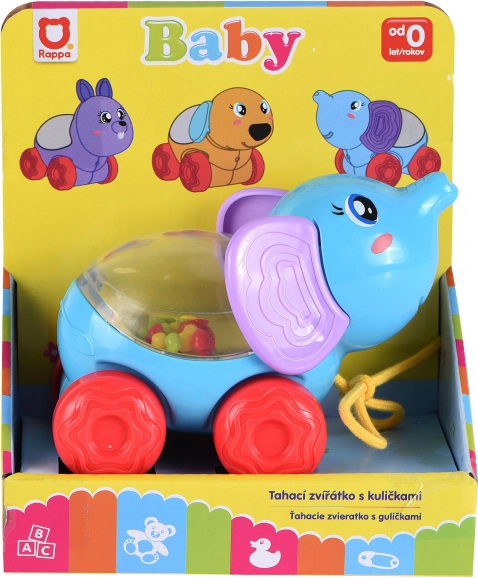 Der Ziehtier-Elefant mit Kügelchen ist ein verspieltes Tier auf Rädern, das Kinder bei ihren ersten Schritten und beim gemeinsamen Spiel begleitet. Beim Ziehen oder Schieben hüpfen bunte Kügelchen im transparenten Bereich, was Kinder auf natürliche Weise zu Bewegung und Entdecken anregt.