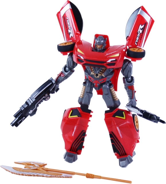 Die durchdachte Verarbeitung ermöglicht eine einfache Transformation vom Auto zum Roboter, sodass Kinder nach Belieben zwischen Rennen und Robo-Schlachten wechseln können. Dank der im Lieferumfang enthaltenen Batterien ist der Autoroboter sofort spielbereit.
