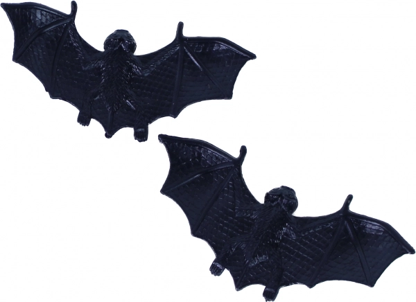 Plastikfledermäuse für die perfekte Dekoration zu Halloween. Ideal für Themenpartys und einfache Platzierung an Wänden oder Decken.