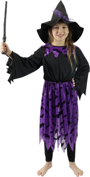 Kinderkostüm Hexe mit Hut und Fledermäusen