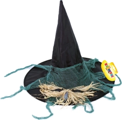 Ergänzen Sie Ihr Kostüm mit einem stilvollen Hexenhut, der nicht nur großartig aussieht, sondern auch perfekt zu jeder Halloween-Party oder Themenfeier passt. Die schwarze Farbe und die Dekoration mit grünem Schleier ziehen mit Sicherheit alle Blicke auf sich. Dieser Hut ist für Erwachsene gemacht und passt hervorragend auf die meisten Kopfgrößen. Geeignet für Personen über 14 Jahren.