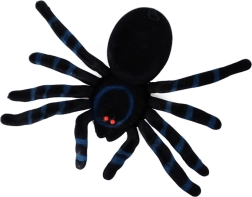 Die schwarze Plüschspinne mit blauen Streifen und auffälligen roten Augen ist die ideale Dekoration für Ihre Halloween-Party. Ihr realistisches Aussehen und das weiche Material garantieren, dass sie jeden Gast beeindruckt.
