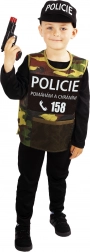 Verwandeln Sie den kleinen Helden in einen Gesetzeshüter: Polizeikostüm für Kinder in der Größe 6–8 Jahre (117–128 cm) enthält schwarzen Overall, Tarnweste mit Aufschrift POLICIE und Kappe. Die praktische Öko-Verpackung verwendet weniger Plastik und spart Platz.