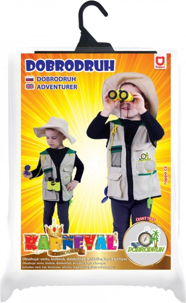 Dieses Karnevalskostüm verwandelt jedes Kind in einen mutigen Entdecker. Die leichte Weste mit Taschen und der Hut ohne Kordel lassen sich leicht anziehen, während das umfangreiche Zubehör die Fantasie anregt und die Neugier beim Spielen drinnen wie draußen fördert.