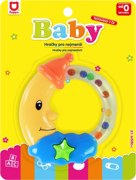 Die niedliche Rassel in Mondform begeistert jedes Baby. Dank der leuchtenden Farben und des sanften Rasselgeräuschs fördert sie die visuelle und auditive Stimulation, während der bequeme Ring das Greifen erleichtert und die Feinmotorik stärkt.