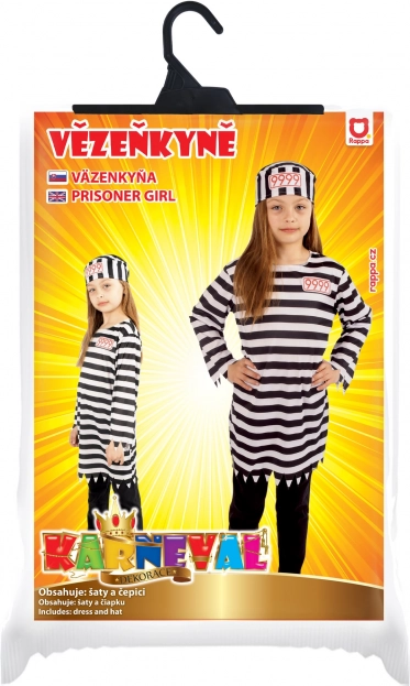 Beleben Sie jede Kostümparty mit diesem eindrucksvollen Gefangenenkostüm im typischen schwarz‑weißen Design. Das Set umfasst ein langes Shirt mit charakteristischem gezacktem Saum sowie eine Mütze mit der Nummer 9999, die dem Outfit einen authentischen Look verleihen. Geeignet für Mädchen mit einer Größe von 105–116 cm (ca. 4–6 Jahre).