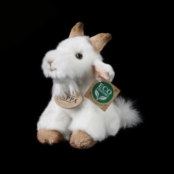 Plüschziege mit einer Größe von 16 cm ist perfekt realistisch und aus hochwertigem, weichem Plüsch gefertigt. Sie ist Teil einer exklusiven Spielzeugkollektion, die Wert auf umweltfreundliche Füllung aus recycelten Materialien legt.