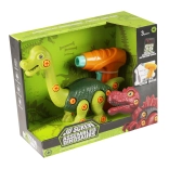Der Schraub-Dinosaurier mit kindgerechtem Akku-Schraubendreher ist das ideale Spielzeug für kleine Baumeister im Vorschulalter. Die Teile werden mit Kunststoffschrauben verbunden, sodass Kinder sicher ihre Feinmotorik und ihr logisches Denken üben können. Der realistisch wirkende batteriebetriebene Schraubendreher verleiht dem Bauen extra Spaß und bringt Kindern die Grundlagen im Umgang mit Werkzeug näher.