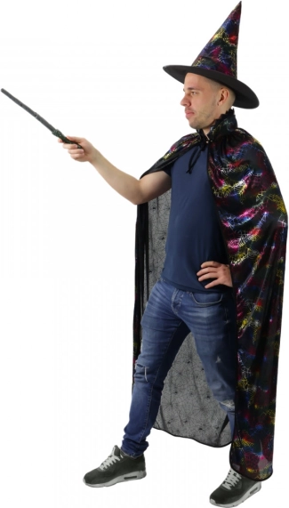 Dieses detailliert gestaltete Kostüm ist ideal für jeden, der magische Abende im dramatischen Stil genießen möchte. Es beinhaltet einen wunderschönen Umhang mit bunten Spinnennetzmustern und einen passenden Hut, der dem gesamten Outfit eine echte magische Atmosphäre verleiht.