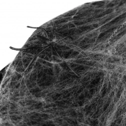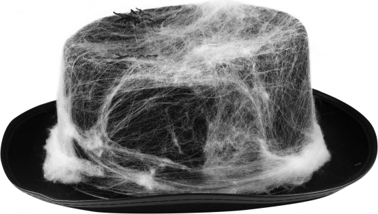 Das weiße künstliche Spinnennetz auf dem schwarzen Hut erzeugt einen starken Kontrast und wirkt realistisch – ideal für Halloween und Horrormotive.