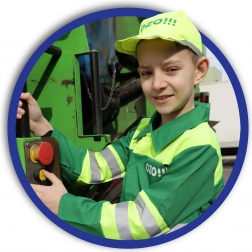 Dieses Kostüm ist ideal für jeden kleinen Fan von Müllfahrzeugen! Es wird als Set geliefert, das eine Bluse mit Aufschrift, eine Mütze und Hosen enthält, alles mit reflektierenden Elementen für bessere Sichtbarkeit.