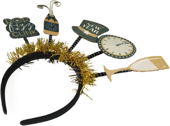 Dieses schwarz-goldene Stirnband ist die perfekte Dekoration für alle Silvesterfeiern und Partys. Es ist zart mit Elementen verziert, die typisch für die Silvesterstimmung sind. Das Stirnband ist für alle gedacht, die das neue Jahr stilvoll, spielerisch und elegant begrüßen möchten.