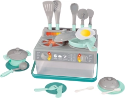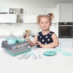Dieses Kinder Küchenset in grau und türkis enthält alles, was Kinder zum Spielen als Koch benötigen. Das Set enthält: