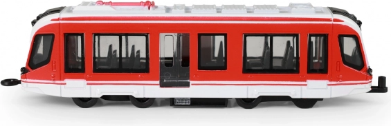 Realistische Straßenbahn aus Metall in roter Ausführung mit einer Länge von 20 cm begeistert kleine und große Fans des städtischen Nahverkehrs. Sie bietet einen Rückzugmechanismus für dynamische Fahrten, öffnende Türen, die per Hebel bedient werden, sowie eine robuste Metallkonstruktion für lange Haltbarkeit. Ein tolles Geschenk für Kinder und Sammler.