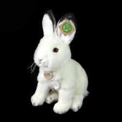 Die detaillierte Form, der weiche weiße Plüsch und die schwarz abgesetzten Ohren verleihen dem Hasen einen authentischen Look, den man lieben wird.