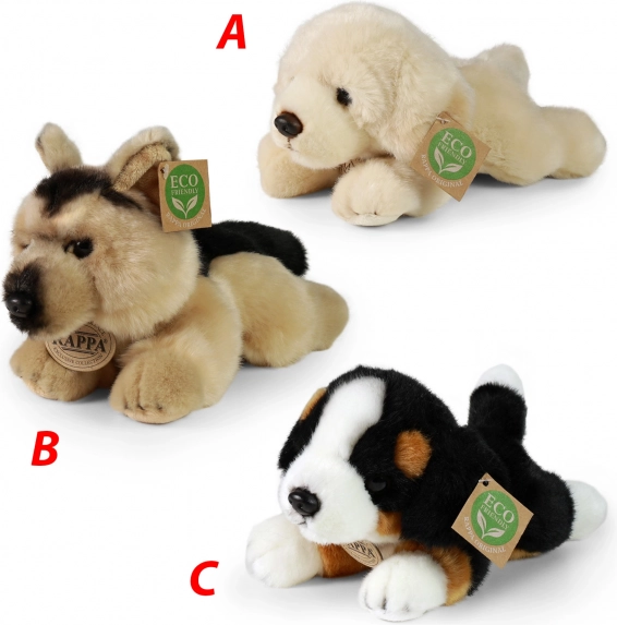Ein niedliches liegendes Plüschhündchen mit 20 cm Größe in drei Ausführungen begeistert Kinder und Sammler. Es besteht aus hochwertigem, weichem Plüsch und gehört zur exklusiven RAPPA-Kollektion. Die Füllung aus recycelten PET-Flaschen ist umweltfreundlich, sicher und fühlt sich nicht von herkömmlicher Füllung unterscheidbar an.