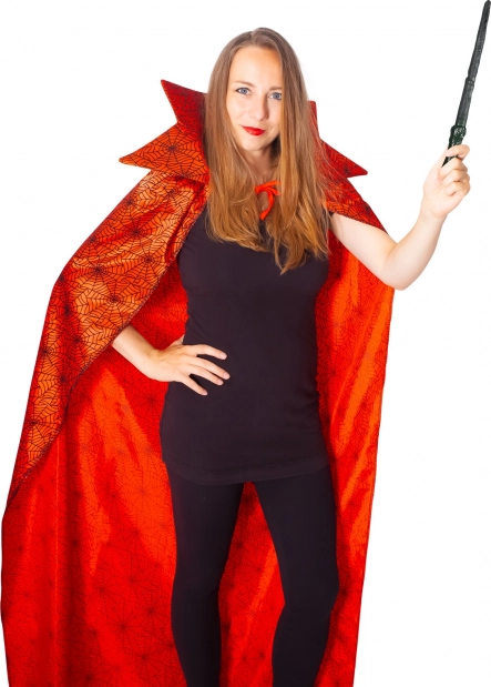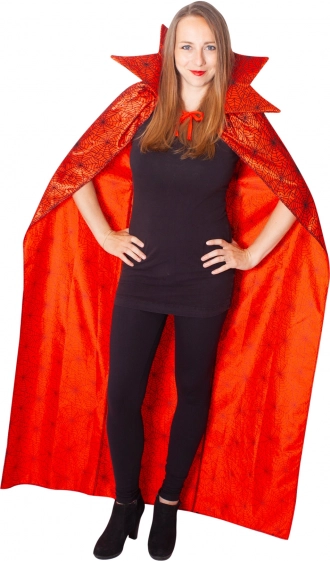 Verwandle dich im Handumdrehen in eine geheimnisvolle Figur – der rote Umhang mit Spinnennetzmuster und hohem Kragen ist die perfekte Wahl für Halloween, Mottopartys, Theateraufführungen und Maskenbälle. Der glanzvolle Materialeffekt und die kräftige Farbe ziehen die Blicke auf sich und unterstreichen dein Kostüm.