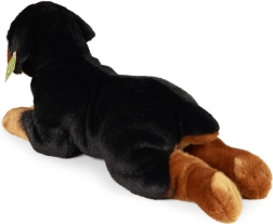 Dieser detailreich gestaltete Plüsch-Rottweiler bietet die perfekte Kombination aus Weichheit, Qualität und Nachhaltigkeit. Die ansprechende schwarz-braune Farbgebung und die realistische liegende Position machen ihn zu einem tollen Kuschelpartner und einer schönen Dekoration fürs Kinderzimmer. Die handgenähte Ausführung garantiert eine präzise Optik und lange Lebensdauer.