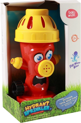 Dieser Spielzeugsprinkler hat fröhliche rote und gelbe Farben mit Comic-ähnlichen Zügen, die Kinder lieben.
