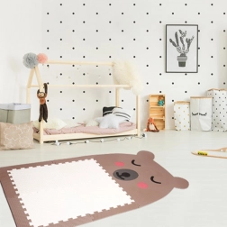 Designer-Puzzle-Boden in Form eines Bärchens in brauner Farbe mit weißem Bauch bringt Spaß und Gemütlichkeit ins Kinderzimmer. Ideal für Kinder zum Spielen und bietet gleichzeitig eine bequeme und weiche Unterlage. Leichte Pflege und Sicherheit sind die Schlüsselfunktionen dieses Produkts.
