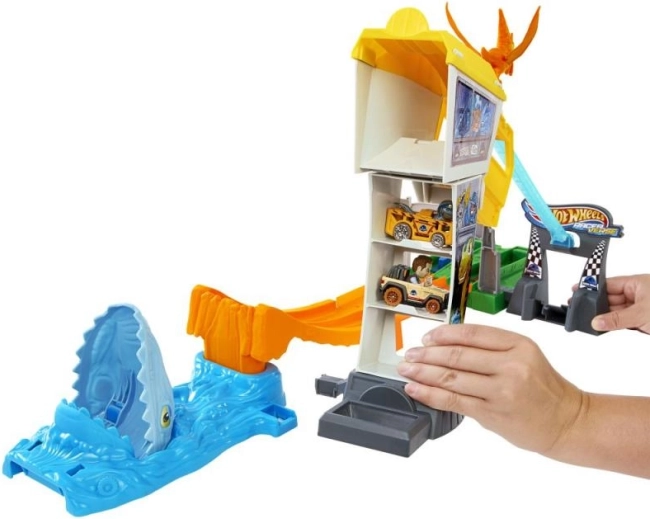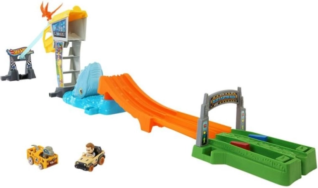 Die Hot Wheels Jurassic Welt Rennbahn versetzt Sie in eine Umgebung voller Geschwindigkeit und Aufregung. Dieses Set beinhaltet: