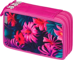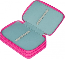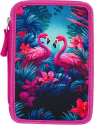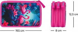 Dreistöckiges Schulmäppchen mit Flamingo-Motiv bietet extra Geräumigkeit, ideal zur Organisation aller Schreibutensilien. Es ist mit Gummibändern für dicke Buntstifte und Filzstifte sowie zuverlässigen YKK-Reißverschlüssen ausgestattet.