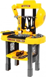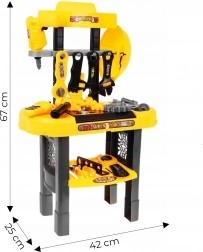 Die Kinderwerkstatt ist so gestaltet, dass sie eine professionelle Arbeitsstation nachahmt und bietet die wichtigsten Werkzeuge für ein unterhaltsames und kreatives Spiel.