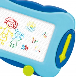 Diese magnetische Zeichentafel ist das ideale Hilfsmittel für kleine Künstler. Dank des mitgelieferten magnetischen Stifts können Kinder sicher und ganz ohne Tinte oder Buntstifte nach ihrer Fantasie zeichnen. Durch das Verschieben des Löschschiebers lassen sich Bilder leicht und schnell löschen, und die Tafel ist sofort bereit für neue Ideen.