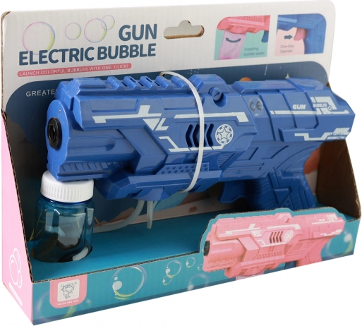 Die Pistole wird mit 3 AA-Batterien betrieben (nicht im Lieferumfang). Die Seifenblasenflüssigkeit ist nicht enthalten – füllen Sie einfach eine beliebige Standard-Seifenblasenlösung nach, und der Spaß kann beginnen.